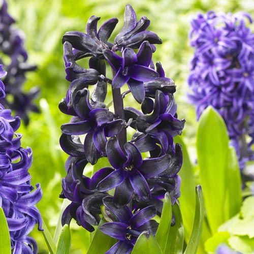 Hyacinth Dark Dimension (Dutch Hyacinth, Hyacinth Orientalis 'Dark Dimension'). A charming hyacinth with a wonderful scent deserves your attention! This variety is almost black in colour. It is dark purple. The darkest variety you have ever seen. It will add coolness to the spring garden. It goes well with white hyacinths, as well as with other plants.
