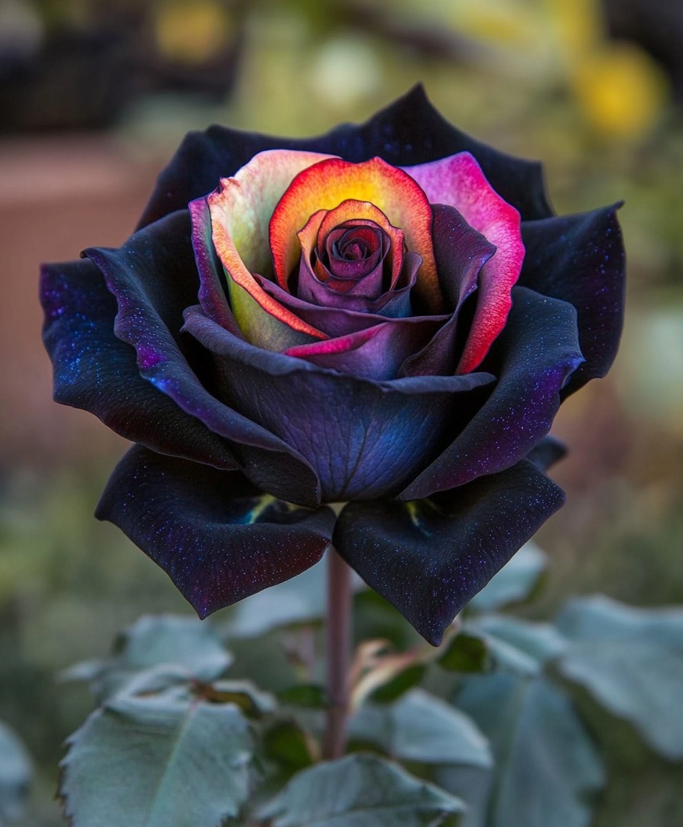 A breathtaking rose with an extraordinary blend of black, yellow, and red petals, creating a striking and unique appearance. This rose adds a dramatic and colorful touch to any garden.