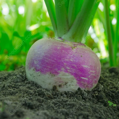 Purple Top White Globe Turnip Seeds produce classic, round turnips with a beautiful purple top and a crisp, white flesh that's perfect for a variety of culinary uses. This heirloom variety is versatile and very easy to grow. Whether you're a seasoned pro or just starting out, these seeds will reward you with a bountiful harvest of delicious turnips that are perfect for roasting, sautéing, or adding to soups and stews.