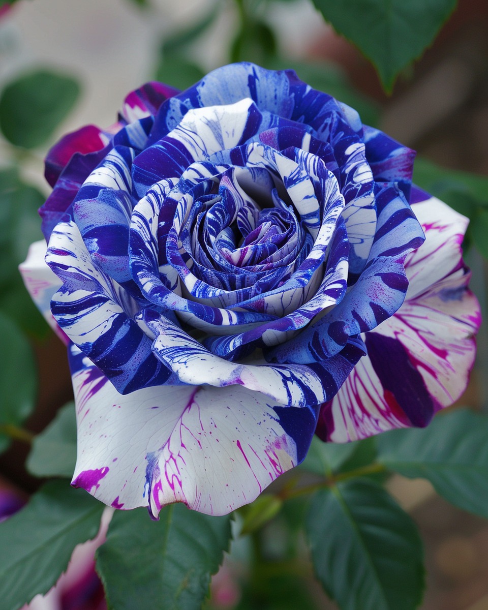 A striped rose is a rose with a breathtaking and unique petals. This particular flower often displays a contrasting or gradient effect, giving it a unique and charming look.
