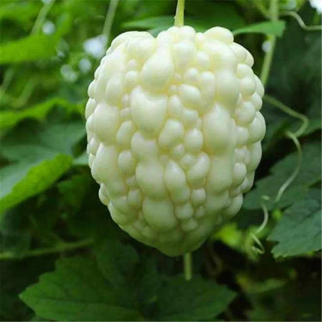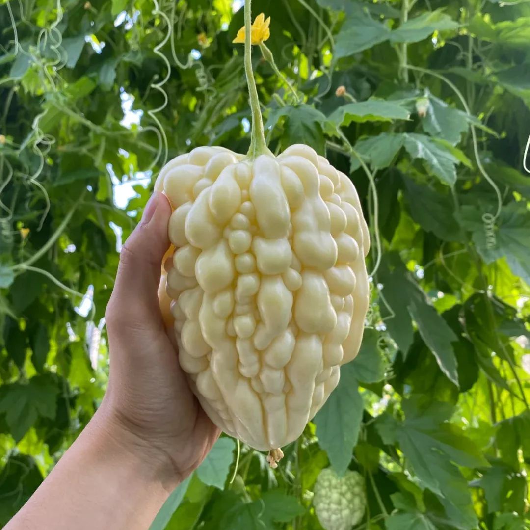 White Jade Bitter Melon is a newly cultivated variety.Its fruit is white in color, thick in flesh, and juicy. Its tender tissue is crisper than green bitter melon. It has a refreshing taste and lighter bitterness than green bitter melon. Its sweetness can reach more than 6°. It can be eaten directly without soaking to remove the bitterness.You can eat it as fruit.