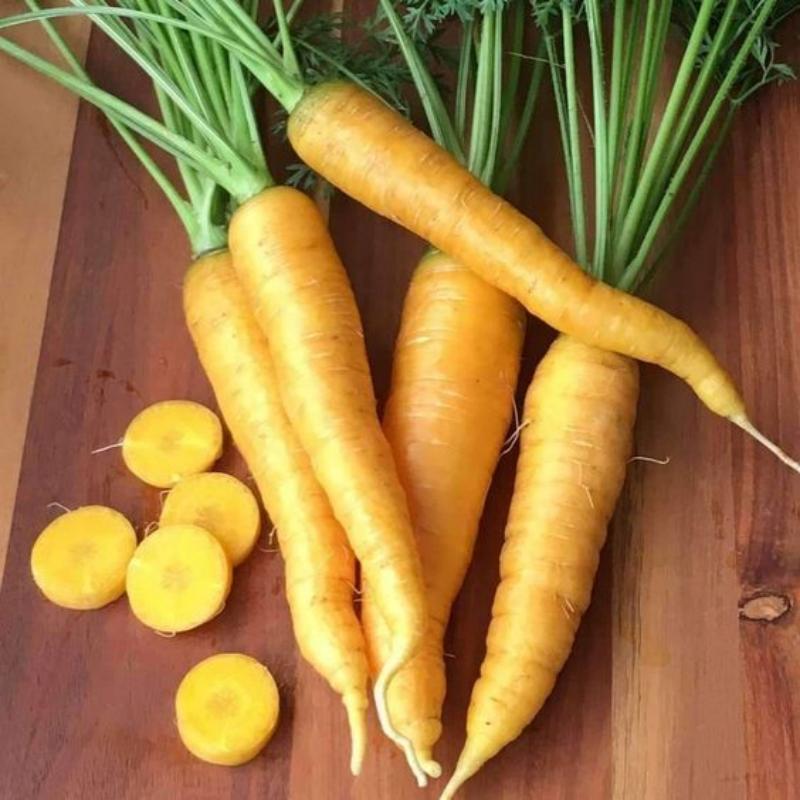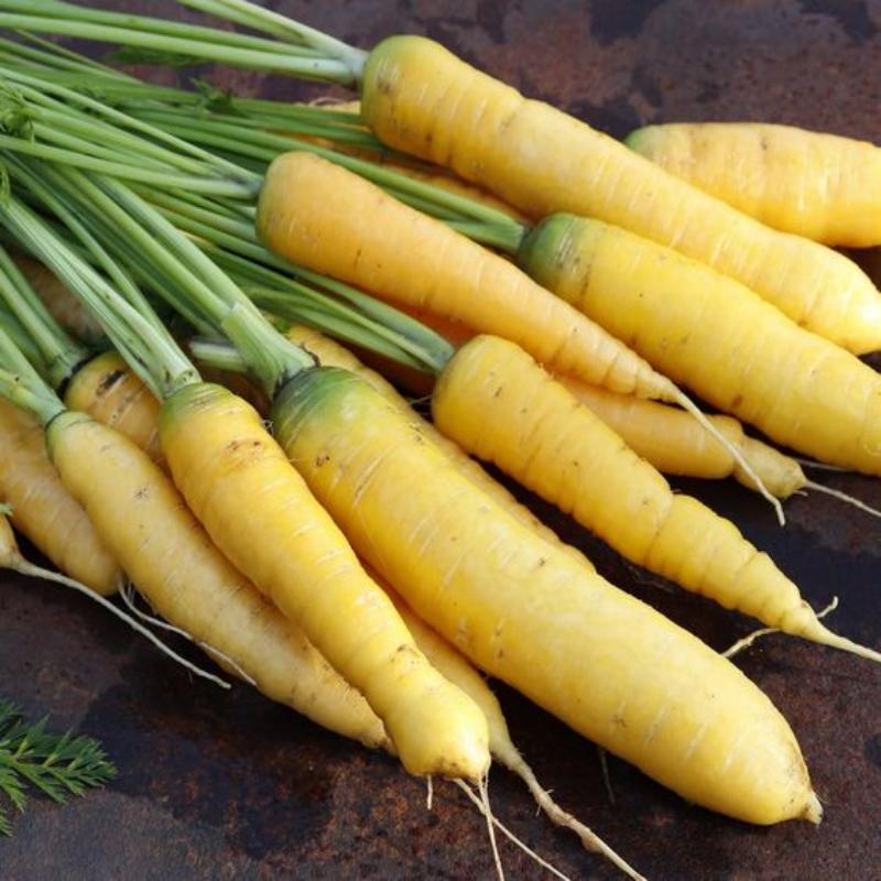 🥕✨Solar Yellow Carrot has a bright yellow color that will pop on any plate and a crisp sweet flavor to match! Solar Yellow grows 7-8-inch roots in a tapered shape and is rich in the healthy antioxidant xanthophyll. This buttery-yellow carrot has an earthy sweet flavor with delicious notes of celery and parsley, making it the perfect choice for raw snacking, juicing, roasting, glazing, or blending into soups and sauces! Carrots are a rich source of beta carotene, fiber, vitamin A, potassium, and antioxidants.